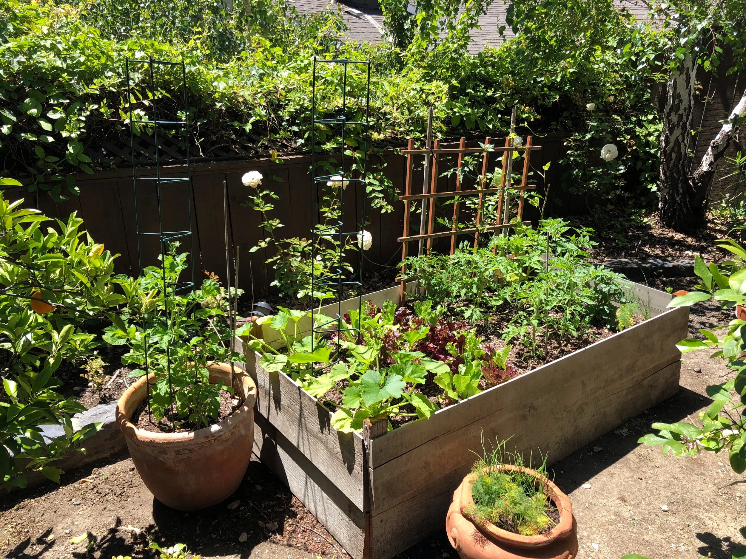 Taking on practical tasks can push the worries away. Sewing masks for friends and family close by, knitting, cooking and writing electronic letters to family and friends far away. When we realized that Shelter In Place would probably be more than a few weeks, I decided to start a little garden. A member of our household built raised beds and we started seeds and seedlings. Now, several weeks later we can harvest the first basil, arugula, lettuce, dill and chives and a few small tomatoes are showing up. It’s fun to follow the garden grow every day, being outside in the clear air, listening to the many sounds of birds and insects. 2 months and many projects later I feel connected to my community and to the Earth and am grateful for the people in my life. How are you doing?